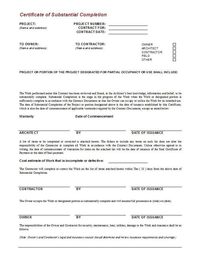 Certificate Of Substantial Completion Template, It’s really a hard task for your company owners to think if the Certificate Of Substantial Completion Template is fine or when it is00 redesigned. With huge choices handy to create a Certificate Of Substantial Completion Template for your own personel company, choosing between the customized and template Certificate Of Substantial Completion Template can make you confused. It’s accessibility for free of charge is a good assistance for most businessmen like a end result of going to help you save consultancy prices, considered as an essential source, and last but not the least your personal worthwhile time.