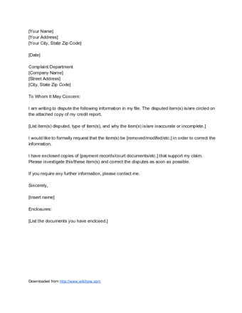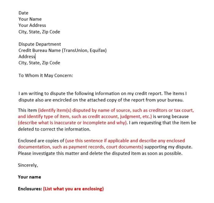 Credit Report Dispute Letter Template
