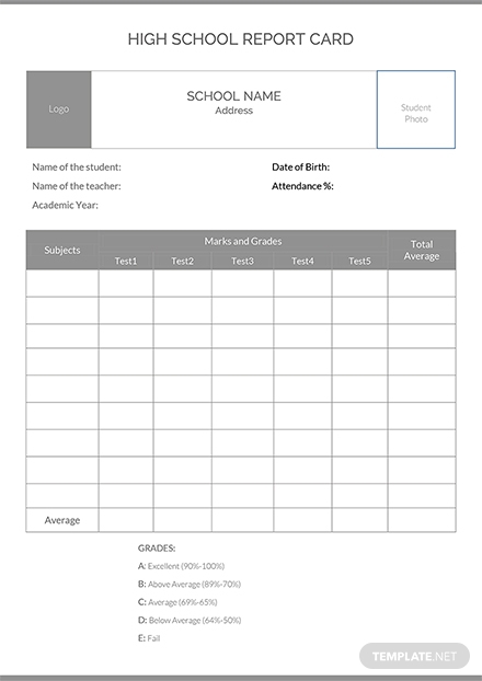 Report Card Format Template