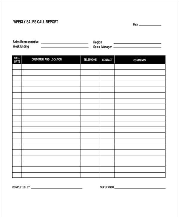 Sales Call Report Template Free