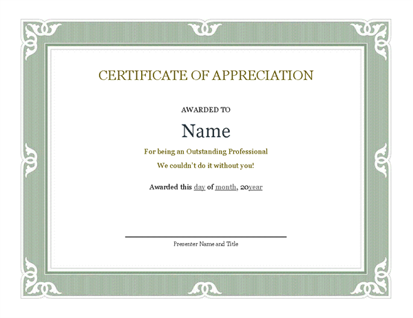 Template For Certificate Of Appreciation In Microsoft Word